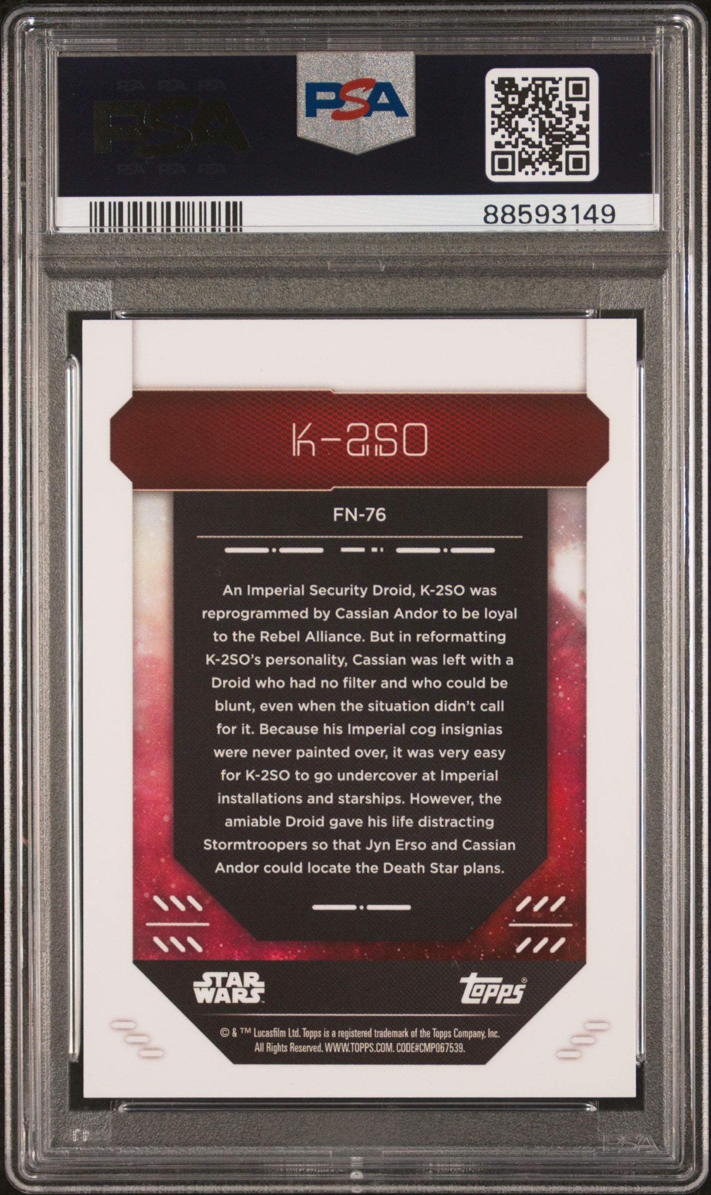 2023 Topps Finest Star Wars K-2so 22/25 #FN76 PSA 9