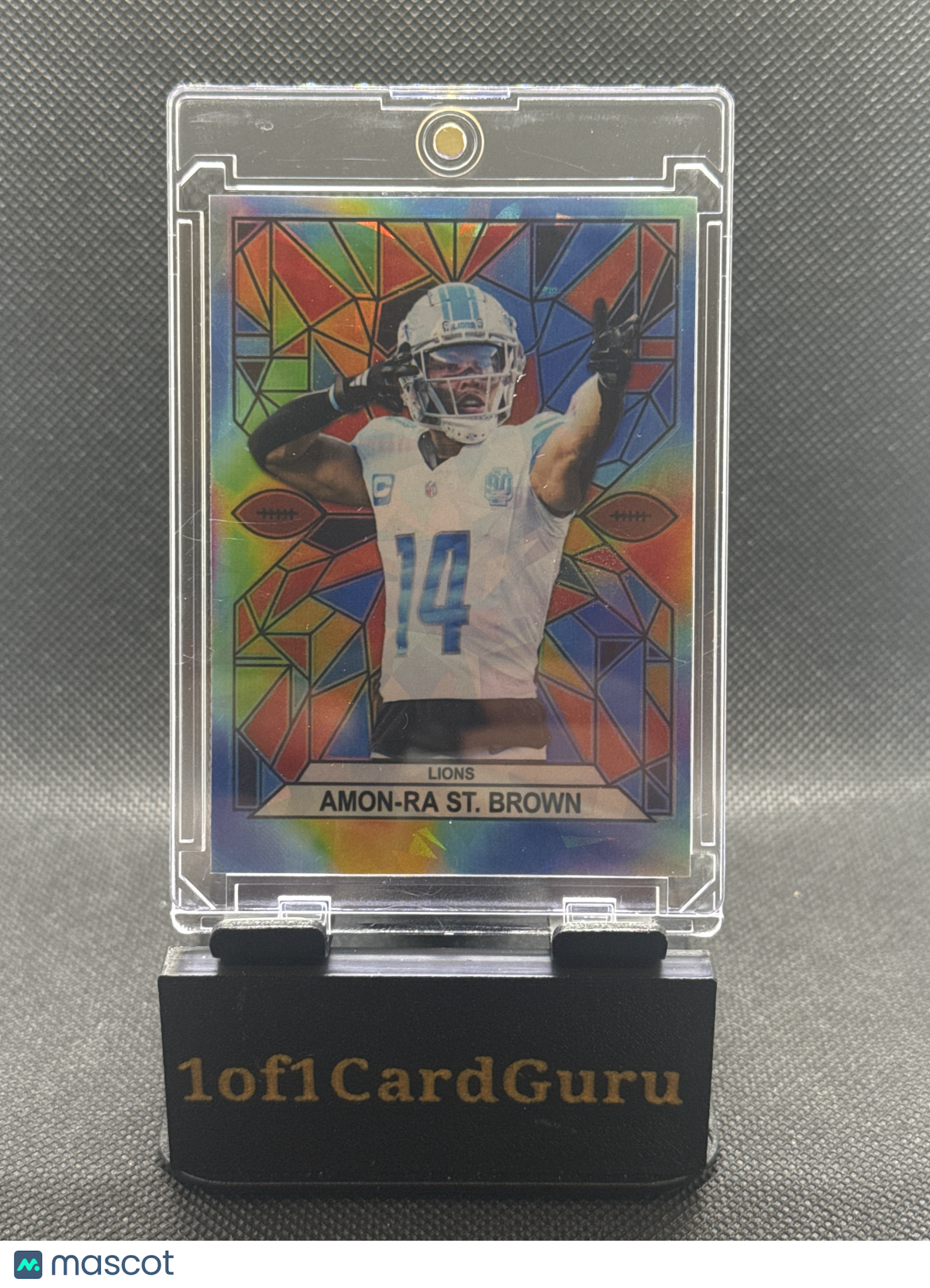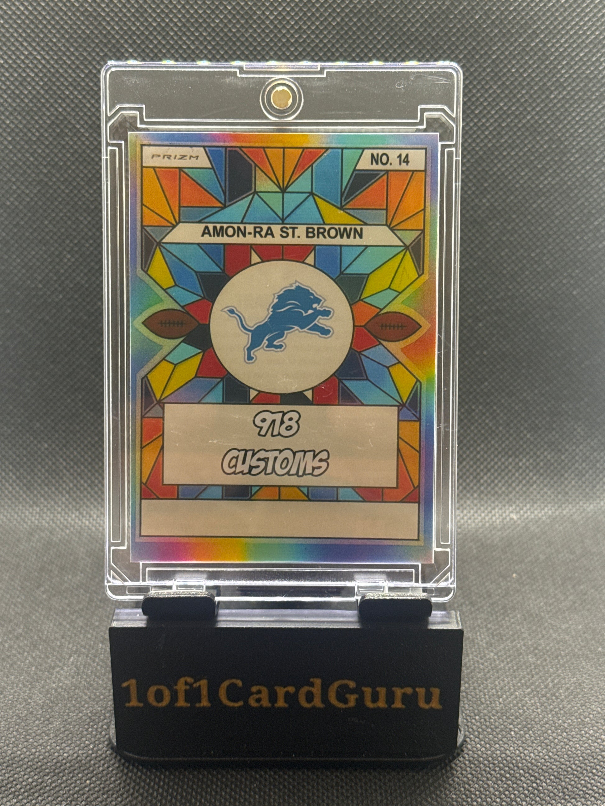 π₯ Amon-Ra St. Brown 918 Custom Card π₯ Check out this stunning stained-glass style custom card of Lions star WR Amon-Ra St. Brown! Made by 918 Customs, this card features a vibrant rainbow finish and eye-catching design that really pops in hand. β